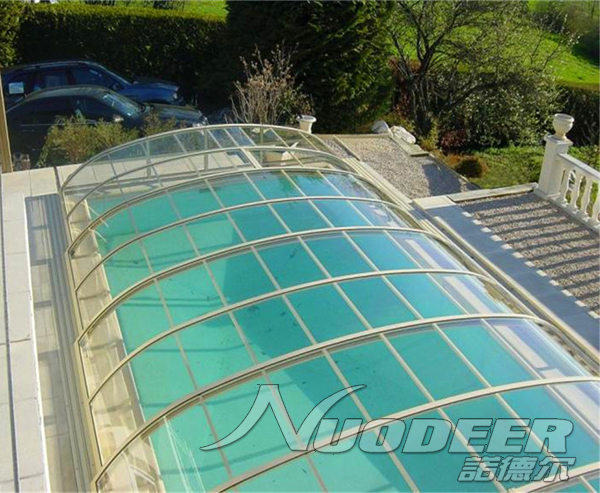 PC耐力板是一种具有出色透光性能的材料,6mm厚度的PC耐力板透光度高达82%,与玻璃相似,难以区分。此外,该材料还具有卓越的耐冲击性能,相较于同等厚度的普通玻璃、有机玻璃和钢化玻璃,其耐冲击性能分别高出300倍、30倍和20倍。即使从2米高度落下4kg锤子该材料也毫发无损。所以,使用PC耐力板制作的阳光房、雨棚,可以有效的抵御来自冰雹、雪压带来的伤害。此外,PC耐力板隔热效果比同等玻璃高7%-25%,隔热性能最高可达49%。在户外应用的阳光房和雨棚中,即使在阳光下暴晒,该材料也不会变黄腐化,其十年后透光率流失仅为6%。