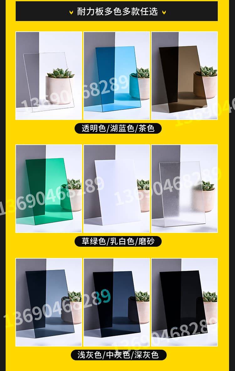 除了这些共性优势,PC 耐力板不同形态还有各自的特点。卷材宽度多样,有 1.22 米、1.56 米等四种规格,30 米一卷,厚度在 1.2mm - 5mm 之间,支持零切(算损耗)和定量定做(无损耗),方便不同需求的采购。雨棚板宽度 0.52 米 - 0.7 米,40 米一卷,厚度 2mm - 3mm,整卷售卖且可定制宽度,适用于雨棚等场景。平板/片材分大小规格,小规格 1.22×2.44 米(厚度 2mm - 12mm)整张卖,大规格 2.1×6 米(厚度 6mm - 10mm)可零切,颜色涵盖透明、湖蓝等 8 种,能满足不同的美观需求。